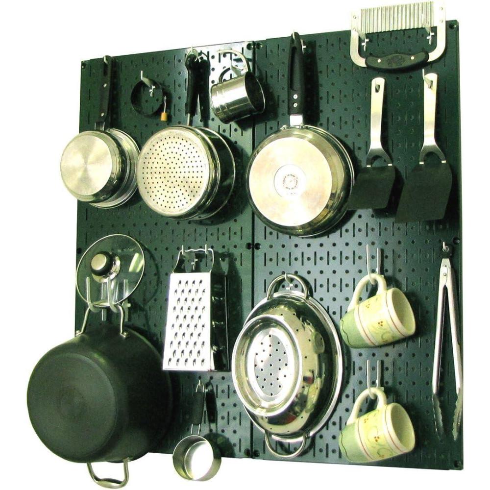 Wall Control Kitchen Pegboard Organizer Pots and Pans Storage Rack Organization Kit with White Pegboard and White Accessories(Green Pegboard Red Accessories)