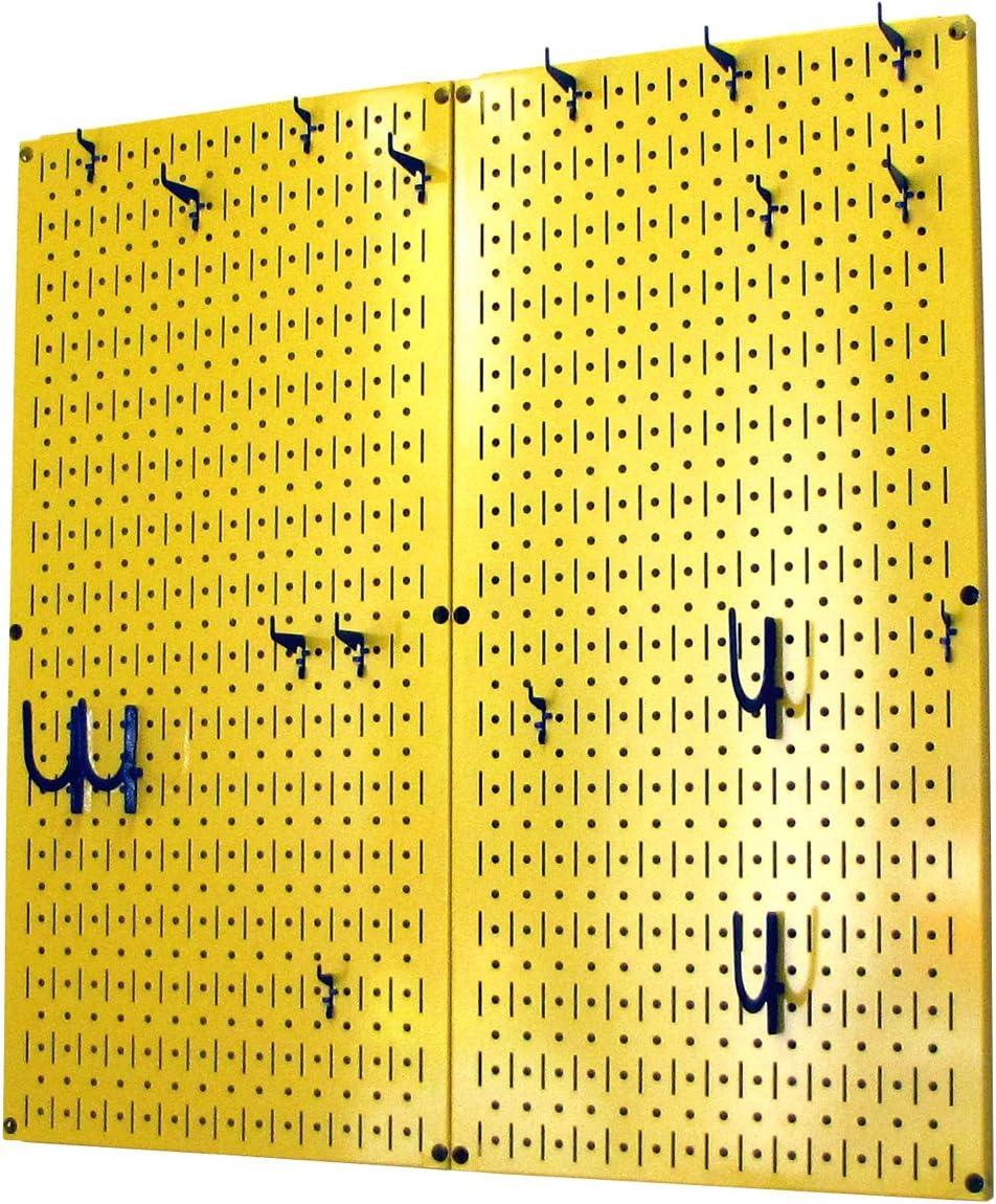 Wall Control Kitchen Pegboard Organizer Pots and Pans Storage Rack Organization Kit with White Pegboard and White Accessories(Yellow Pegboard Blue Accessories)