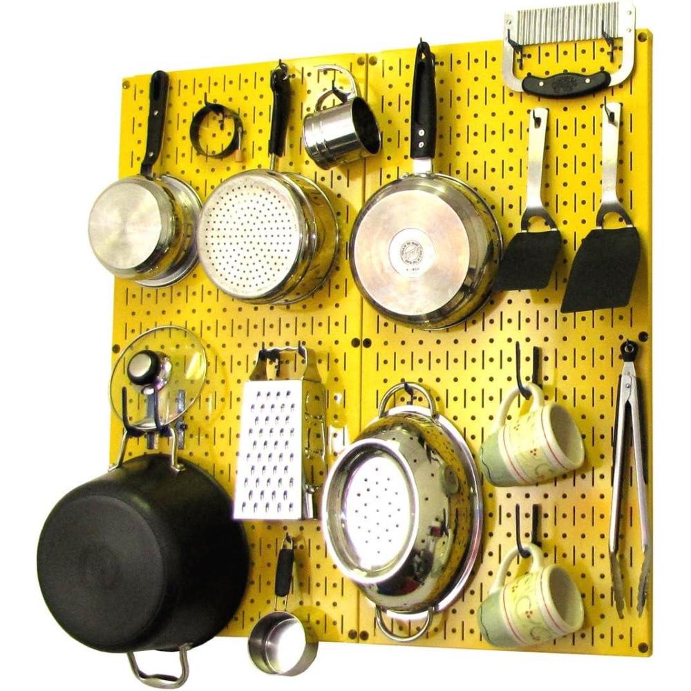 Wall Control Kitchen Pegboard Organizer Pots and Pans Storage Rack Organization Kit with White Pegboard and White Accessories(Yellow Pegboard Black Accessories)