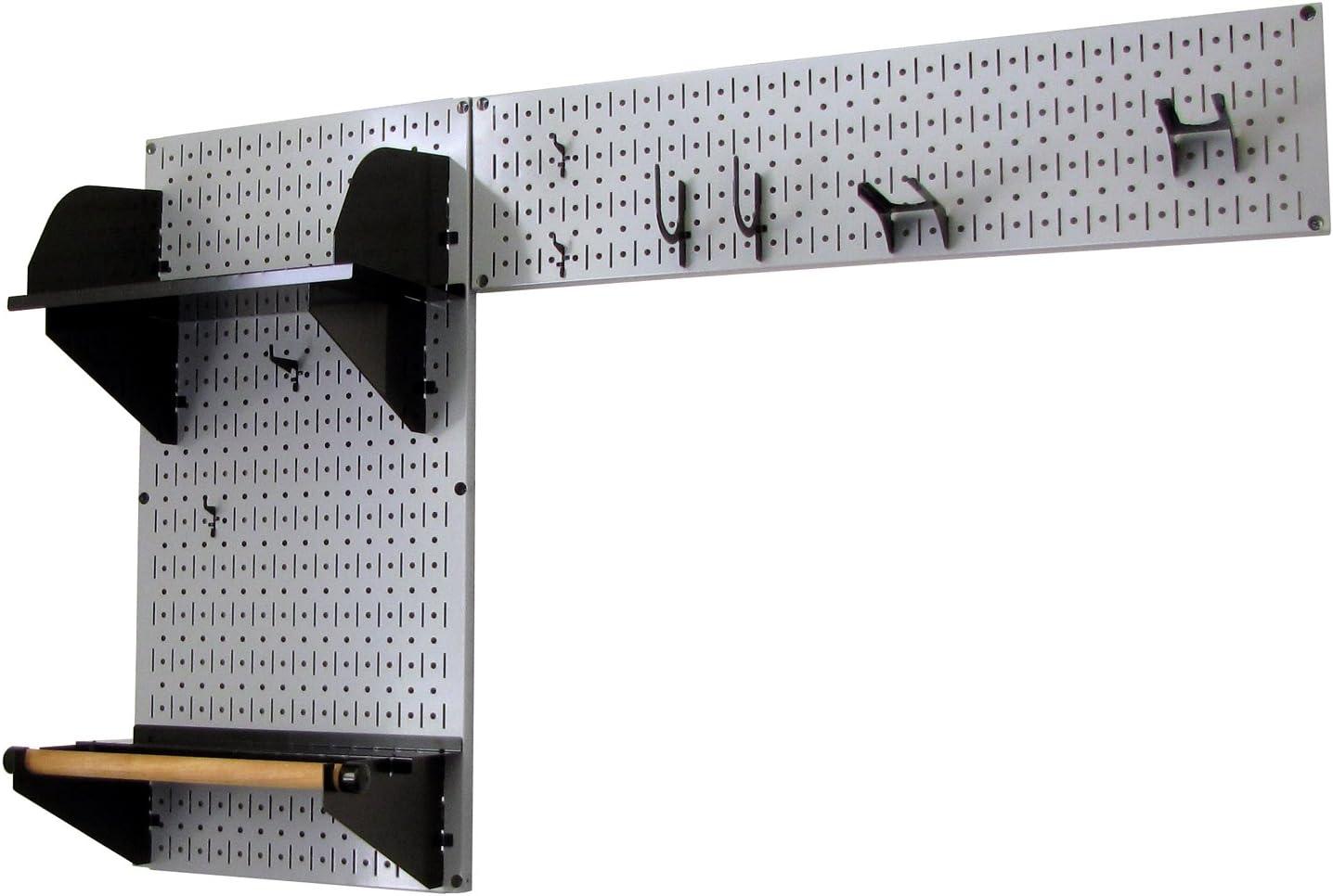 The Wall Control Pegboard Garden Supplies Storage and Organization Garden Tool Organizer Kit offers excellent garden tool storage and organization for your gardening supplies. This pegboard garden tool organizer is easy to install and even wipes clean with a damp rag unlike conventional pegboard that warps and frays over time when exposed to moisture or heavy loads. The attractive Metal Pegboards are great for heavy duty tool board storage and organization due to the pegboard's 20 gauge steel construction that makes them over 10 times stronger than conventional pegboard. This is a garden tool storage solution that will last a lifetime. Wall Control garden metal pegboards offer both slots and holes to accept slotted tool board accessories as well as conventional 1/4in peg board hooks making this garden pegboard extremely versatile by giving the user multiple options with tool board accessory selection. The patented engagement of the slotted tool board hooks included improves hook security for more hassle free tool storage. These versatile, durable, and high strength metal pegboard panels are an easy-to-use garden tool storage solution for any garage, shop, or shed. The metal pegboard panels are easy to install into studs or flat surfaces with pre-drilled mounting holes on 16in centers. A built-in frame return flange provides ample hook clearance and full access to all holes without requiring additional framework or using up pegboard holes for mounting. Mounting hardware is also included. Wall Control Garden Pegboard Products are Made in the USA. The Garden Tool Pegboard Organizer Kit Includes: (1) 16in x 32in Metal Pegboard Panel (1) 8in x 32in Metal Pegboard Panel (1) 9in Pegboard Shelf Assembly with Shelf Dividers (1) 4in Pegboard Shelf with Dowel Rod Assembly (2) Handle Hangers, 1-1/4″ (2) U-Hooks, 3″ Reach (1) Pack of Assorted Garden Hooks. Mounting Hardware is Included. Black Pegboards with White Tool board Accessories. Tools and Tool Sets Not Included.