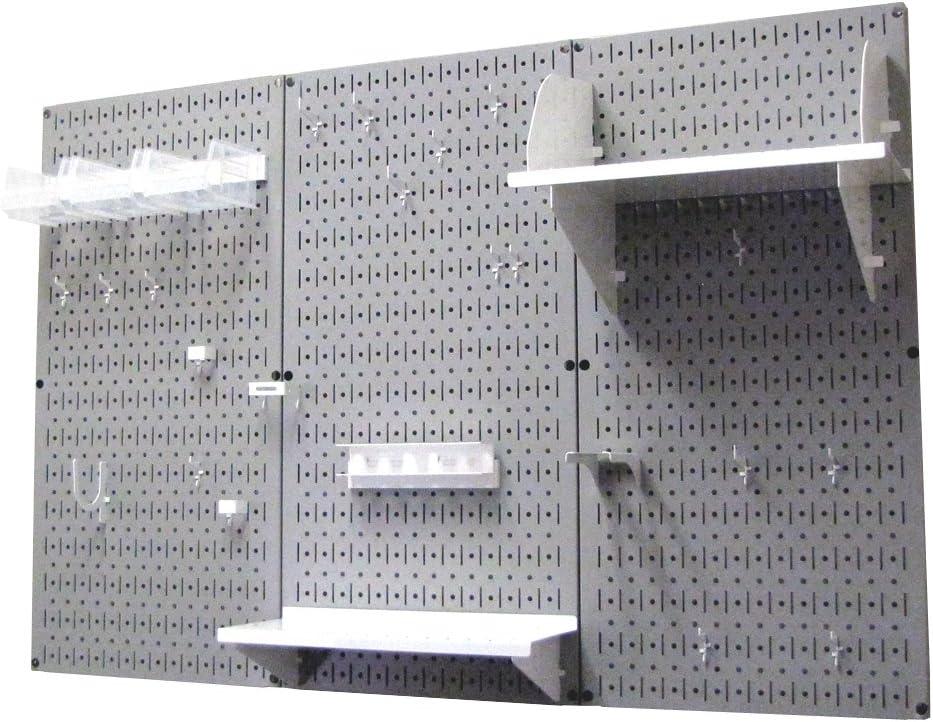 Wall Control Pegboard Organizer 4 ft. Metal Pegboard Standard Tool Storage Kit with Black Toolboard and Black Accessories(Gray Pegboard with White Accessories)