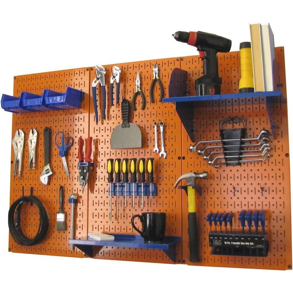 Wall Control Pegboard Organizer 4 ft. Metal Pegboard Standard Tool Storage Kit with Black Toolboard and Black Accessories(Orange Pegboard Blue Accessories)