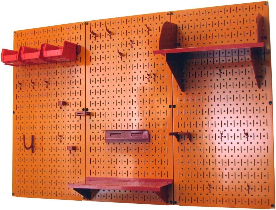Wall Control Pegboard Organizer 4 ft. Metal Pegboard Standard Tool Storage Kit with Black Toolboard and Black Accessories(Orange Pegboard Red Accessories)