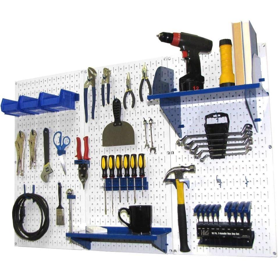 Wall Control Pegboard Organizer 4 ft. Metal Pegboard Standard Tool Storage Kit with Black Toolboard and Black Accessories(White Pegboard Blue Accessories)