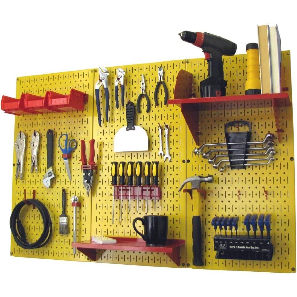 Wall Control Pegboard Organizer 4 ft. Metal Pegboard Standard Tool Storage Kit with Black Toolboard and Black Accessories(Yellow Pegboard Red Accessories)