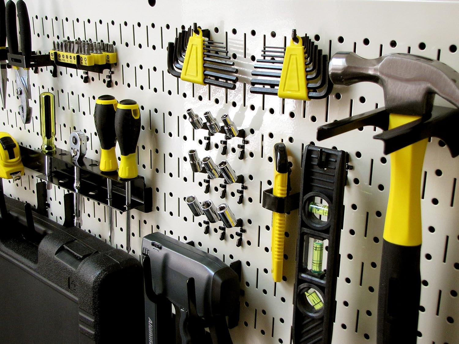 Wall Control Pegboard Organizer 4 ft. Metal Pegboard Standard Tool Storage Kit with Black Toolboard and Black Accessories(Yellow Pegboard with White Accessories)