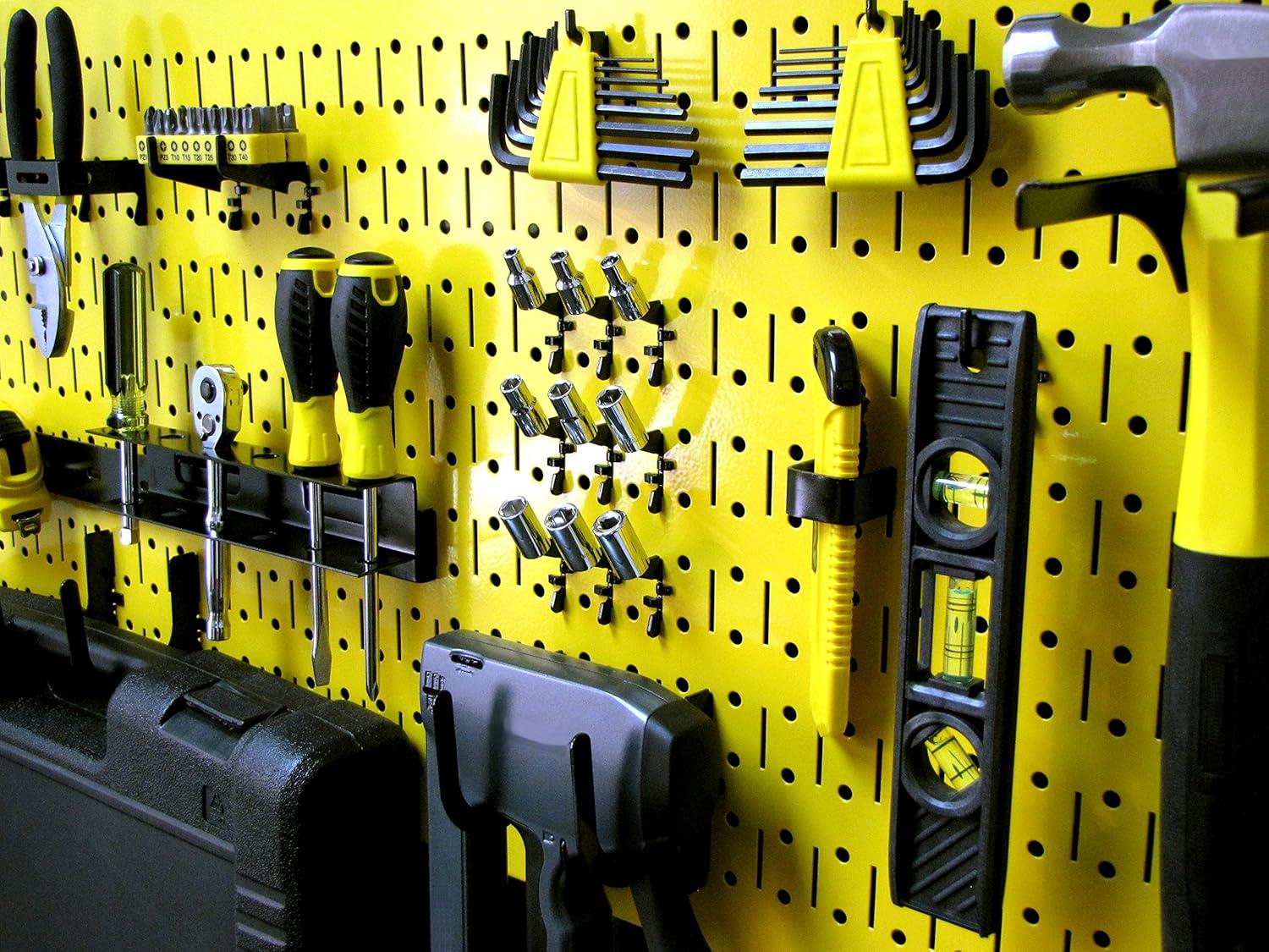 imageWall Control Pegboard Value Pack  3 Pack of Wall Control 16Inch Tall x 32Inch Wide Horizontal Black Metal Wallboards for Home ampamp Garage Tool Storage Organization Black PegboardYellow Pegboard