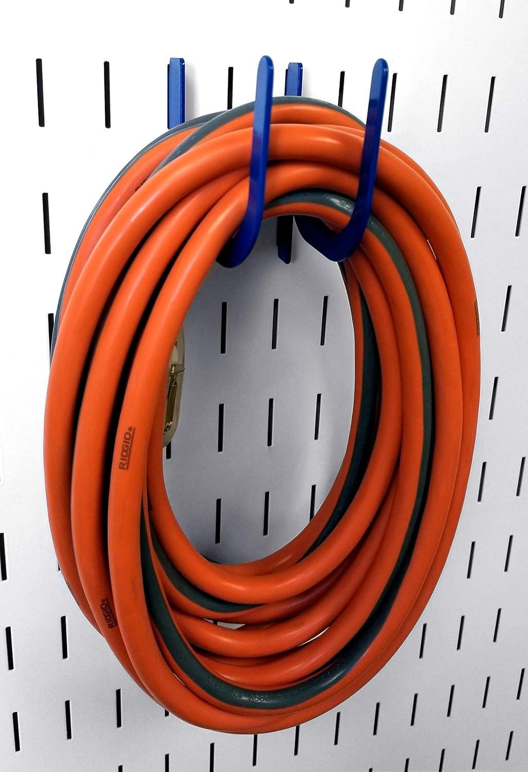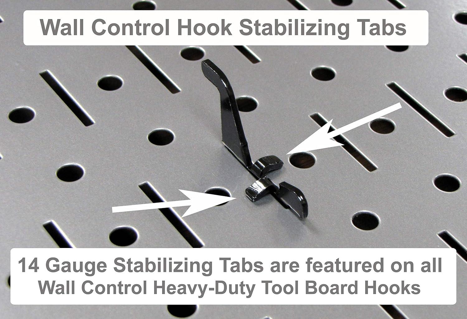 The Wall Control Slotted Pegboard 4 Inch Reach U-Hook Peg Accessory for Wall Control's Pegboard and Slotted Tool Board is great for both home and garage storage and organization. This is one of Wall Control's most popular pegboard hooks because it is so versatile. The U-Hook is a great pegboard hook for extension cords, ropes, cordless drills, and much more. The Pegboard U Shaped S Hook is also a great pegboard hook for hanging wire baskets from Wall Control Pegboard in the garage for basketball and baseball glove storage and organization. The Wall Control Pegboard U-Hook is great in the kitchen for organizing coffee mugs and pots and pans with handles. The U-Hook extends 4in from the pegboard tool board and features a 3in opening. Wall Control Slotted Metal Pegboard Hooks feature a scratch and rust resistant baked-on finish. Wall Control slotted peg hooks offer a patented engagement that requires two deliberate motions up-and-down to engage and disengage the hooks. This feature makes Wall Control Slotted Pegboard hooks less likely to fall out of the pegboard than conventional peg hooks that can easily fall off when tools are removed. These Wall Control hooks feature stabilizing tabs which can be bent back toward the panel face with a pair of pliers to create tension against the panel face essentially locking them into place. This might require a little bit of fine tuning depending on panel finish (some finishes are thicker than others depending on color). These slotted Wall Control hooks are only for use with Wall Control Pegboard and Slotted Tool Board Panels. Although Wall Control Metal Pegboard Panels will accept conventional 1/4in pegboard accessories as well as Wall Control Slotted Accessories the Slotted Secure Tool Board Hooks included in this 2-Pack are only for use with Wall Control Metal Pegboard Panels and Tool Boards. Wall Control Pegboard U-Hooks are not for use with Wall Control's 3in Tall Pegboard Strips because they only have a single row of Slots.
