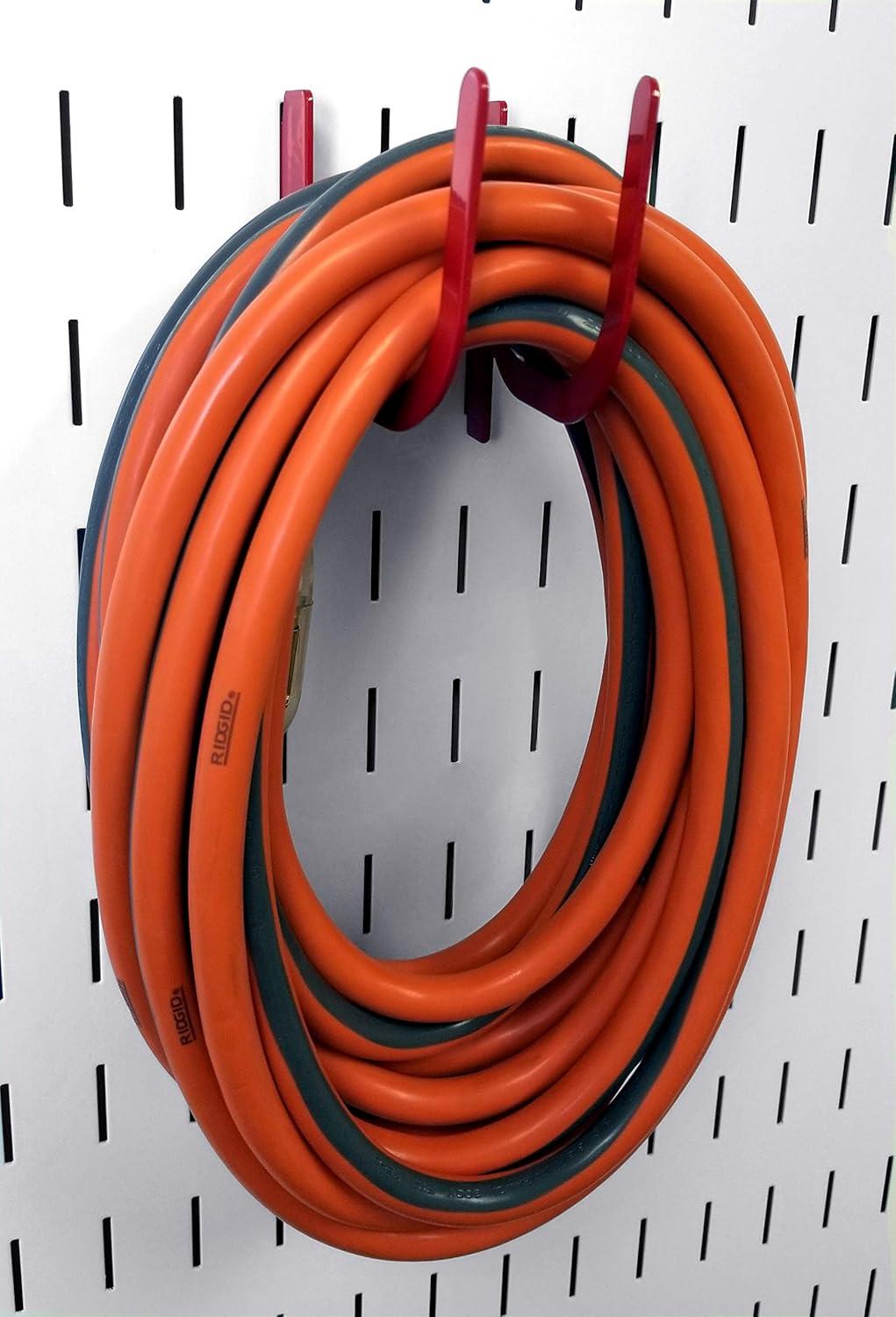 The Wall Control Slotted Pegboard 4 Inch Reach U-Hook Peg Accessory for Wall Control's Pegboard and Slotted Tool Board is great for both home and garage storage and organization. This is one of Wall Control's most popular pegboard hooks because it is so versatile. The U-Hook is a great pegboard hook for extension cords, ropes, cordless drills, and much more. The Pegboard U Shaped S Hook is also a great pegboard hook for hanging wire baskets from Wall Control Pegboard in the garage for basketball and baseball glove storage and organization. The Wall Control Pegboard U-Hook is great in the kitchen for organizing coffee mugs and pots and pans with handles. The U-Hook extends 4in from the pegboard tool board and features a 3in opening. Wall Control Slotted Metal Pegboard Hooks feature a scratch and rust resistant baked-on finish. Wall Control slotted peg hooks offer a patented engagement that requires two deliberate motions up-and-down to engage and disengage the hooks. This feature makes Wall Control Slotted Pegboard hooks less likely to fall out of the pegboard than conventional peg hooks that can easily fall off when tools are removed. These Wall Control hooks feature stabilizing tabs which can be bent back toward the panel face with a pair of pliers to create tension against the panel face essentially locking them into place. This might require a little bit of fine tuning depending on panel finish (some finishes are thicker than others depending on color). These slotted Wall Control hooks are only for use with Wall Control Pegboard and Slotted Tool Board Panels. Although Wall Control Metal Pegboard Panels will accept conventional 1/4in pegboard accessories as well as Wall Control Slotted Accessories the Slotted Secure Tool Board Hooks included in this 2-Pack are only for use with Wall Control Metal Pegboard Panels and Tool Boards. Wall Control Pegboard U-Hooks are not for use with Wall Control's 3in Tall Pegboard Strips because they only have a single row of Slots.