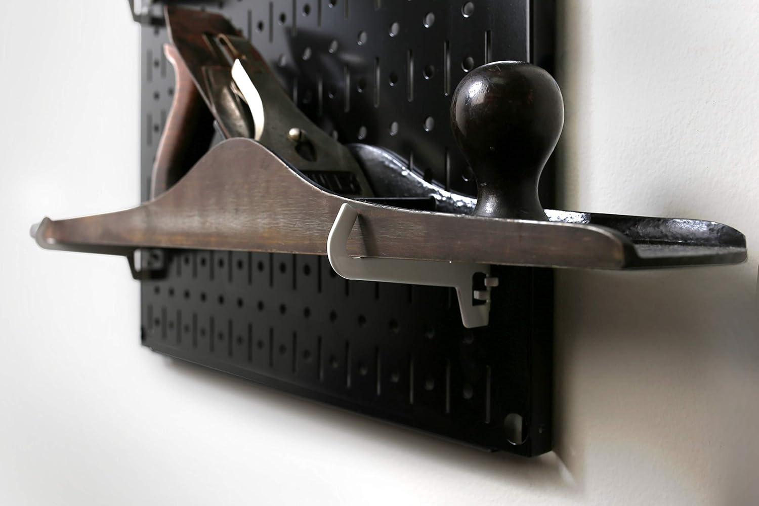 ACCEPTS ROUND PEGS AND SLOTTED: The Wall Control Lazy Guy DIY Woodworking Maker Tool Storage Kit Accepts 1/4-In Round Pegs and All Wall Control Brand Peg Hooks.
