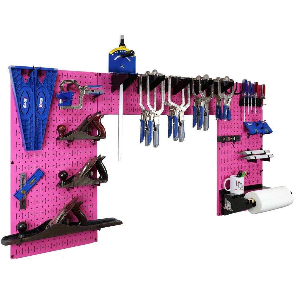 imageWall Control Woodworking Tool Storage Organization Kit  Lazy Guy DIY Edition Wood Working Tool Supply Organizer for DoItYourself Woodworkers and Makers Purple PegboardPink Pegboard